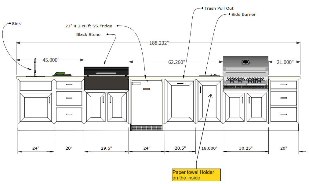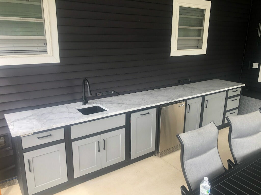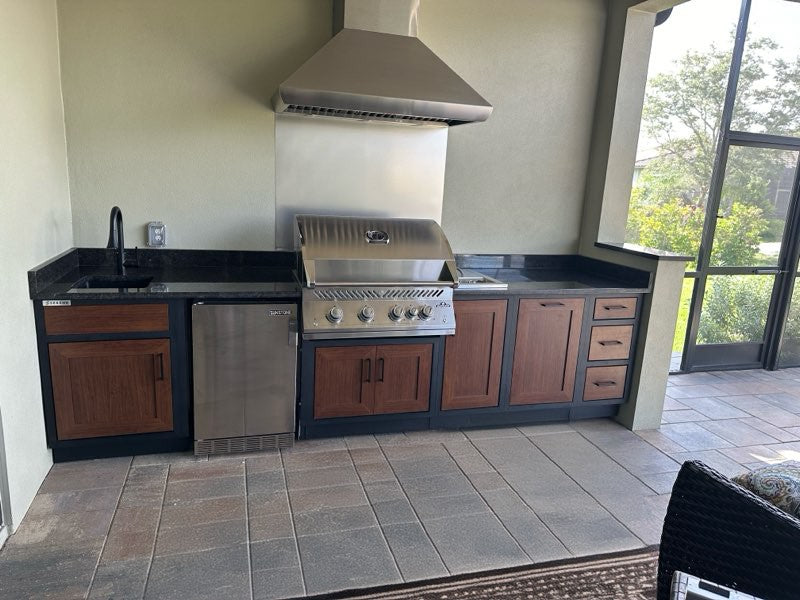 We design, manufacture, and sell all of our kitchens direct to our customers. Every outdoor kitchen is built to order so we can deliver a perfect fit for your space. Coastal powder coat that is made to be outdoors in any environment. Tough construction with a 1" x 1" welded tube frame at the heart of every cabinet.