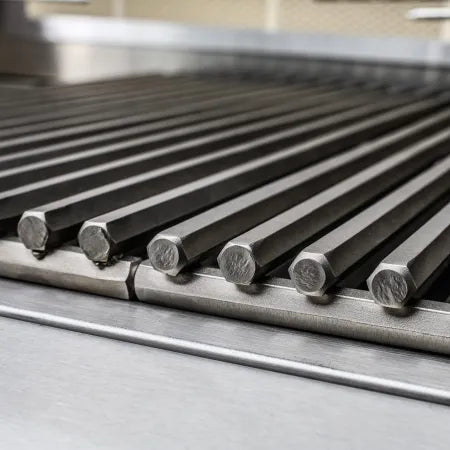 - Flame stabilizing grids minimize flare-ups while adding a grilled flavor